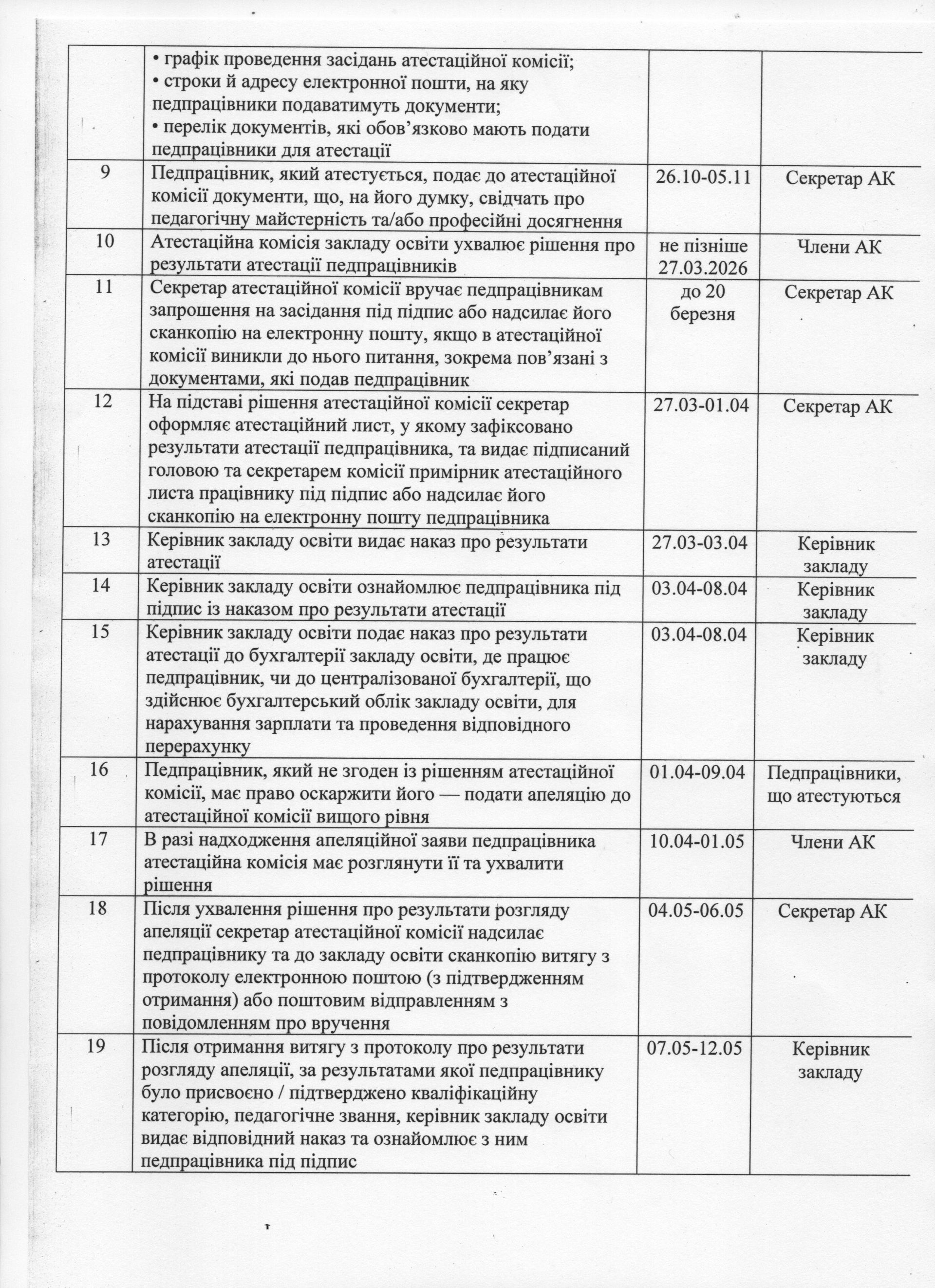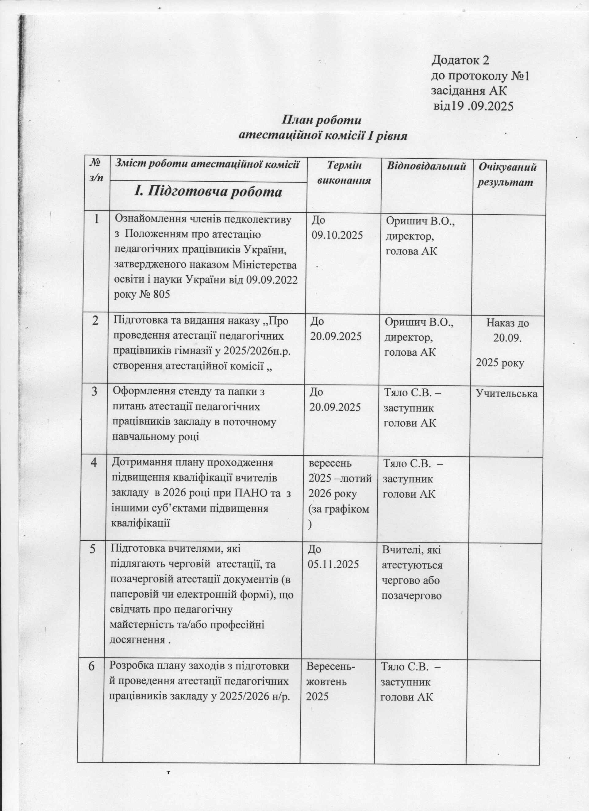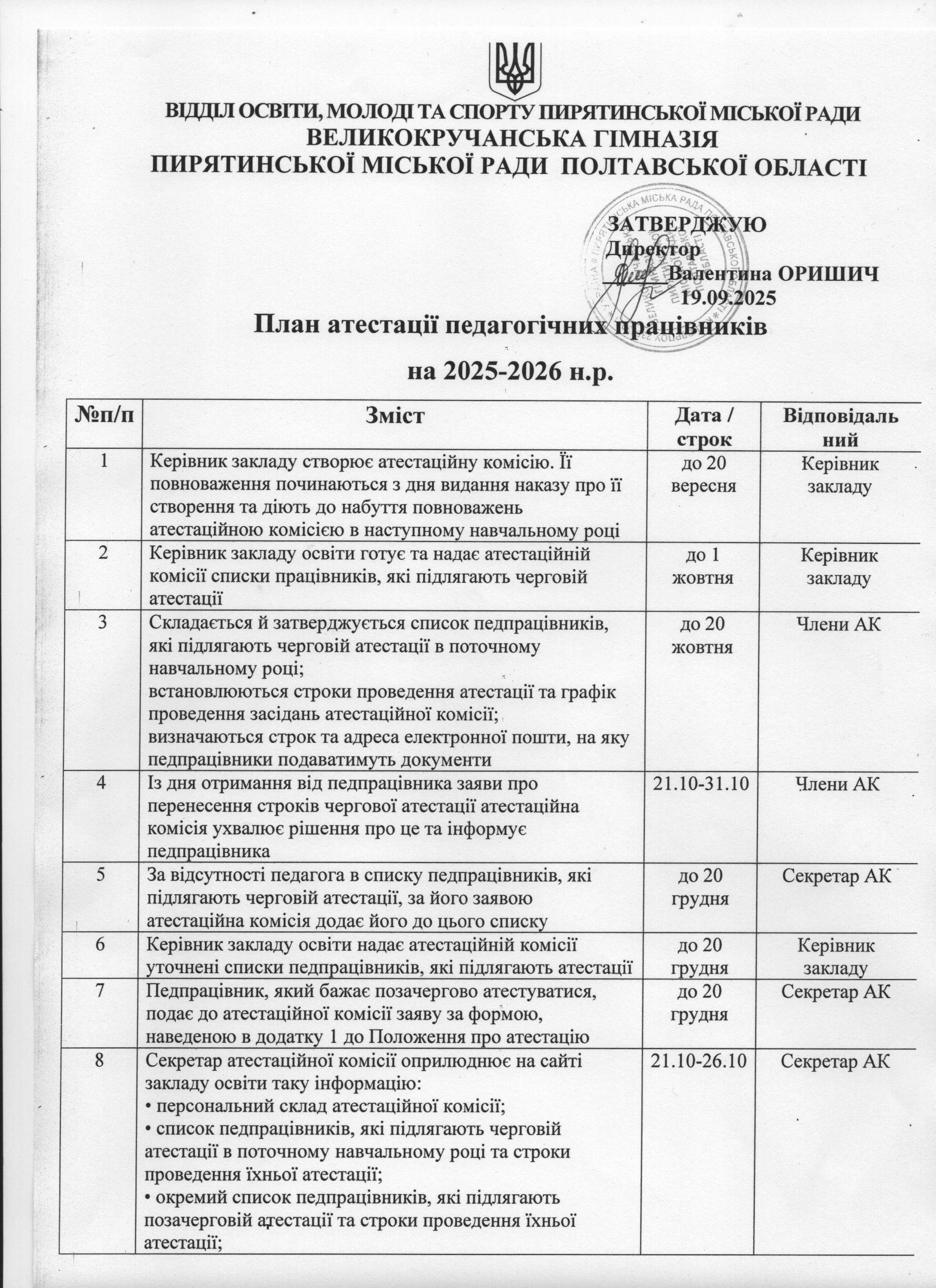План атестації педагогічних працівників на 2025-2026 н. р.