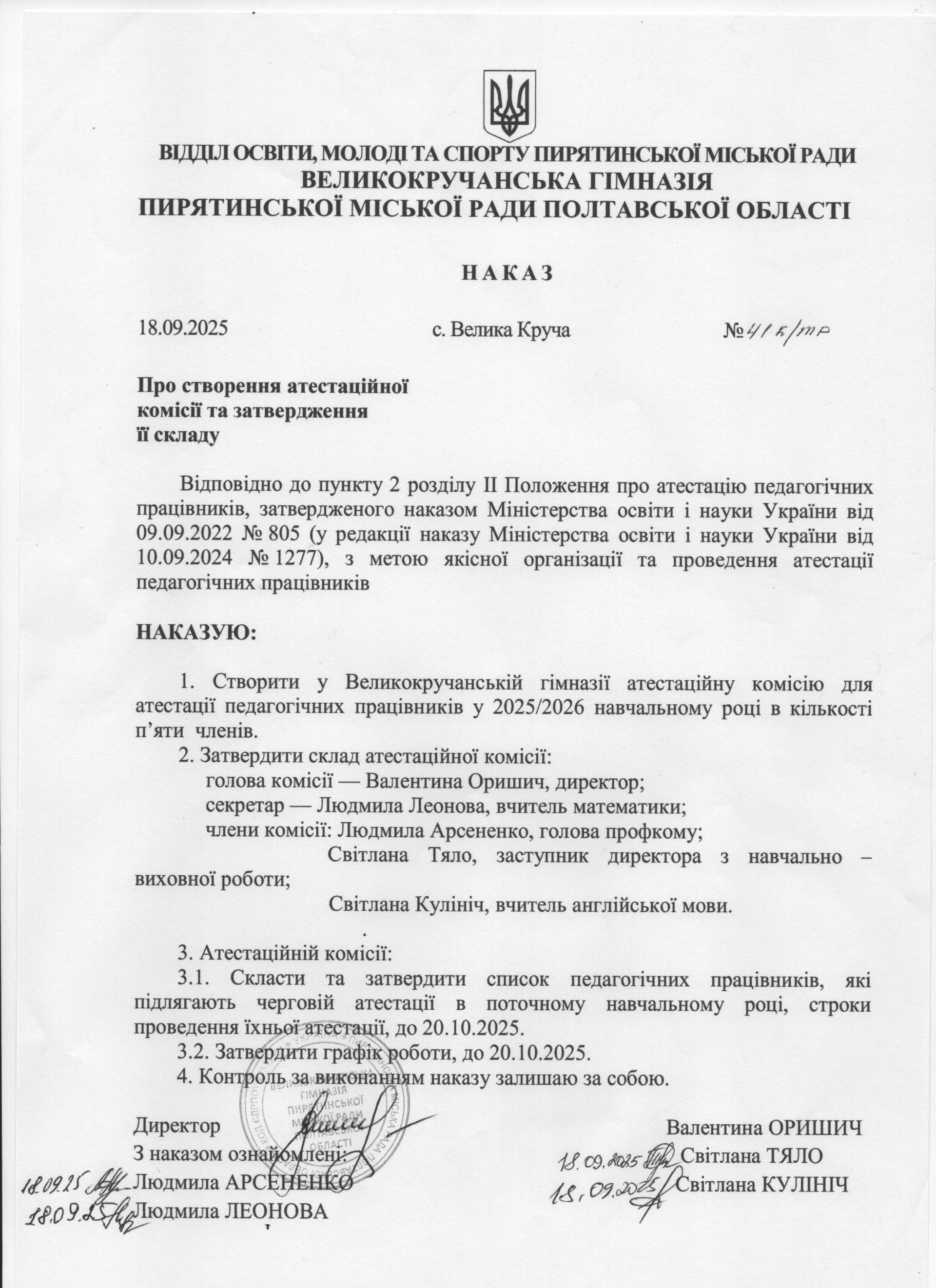 Наказ про результати атестації