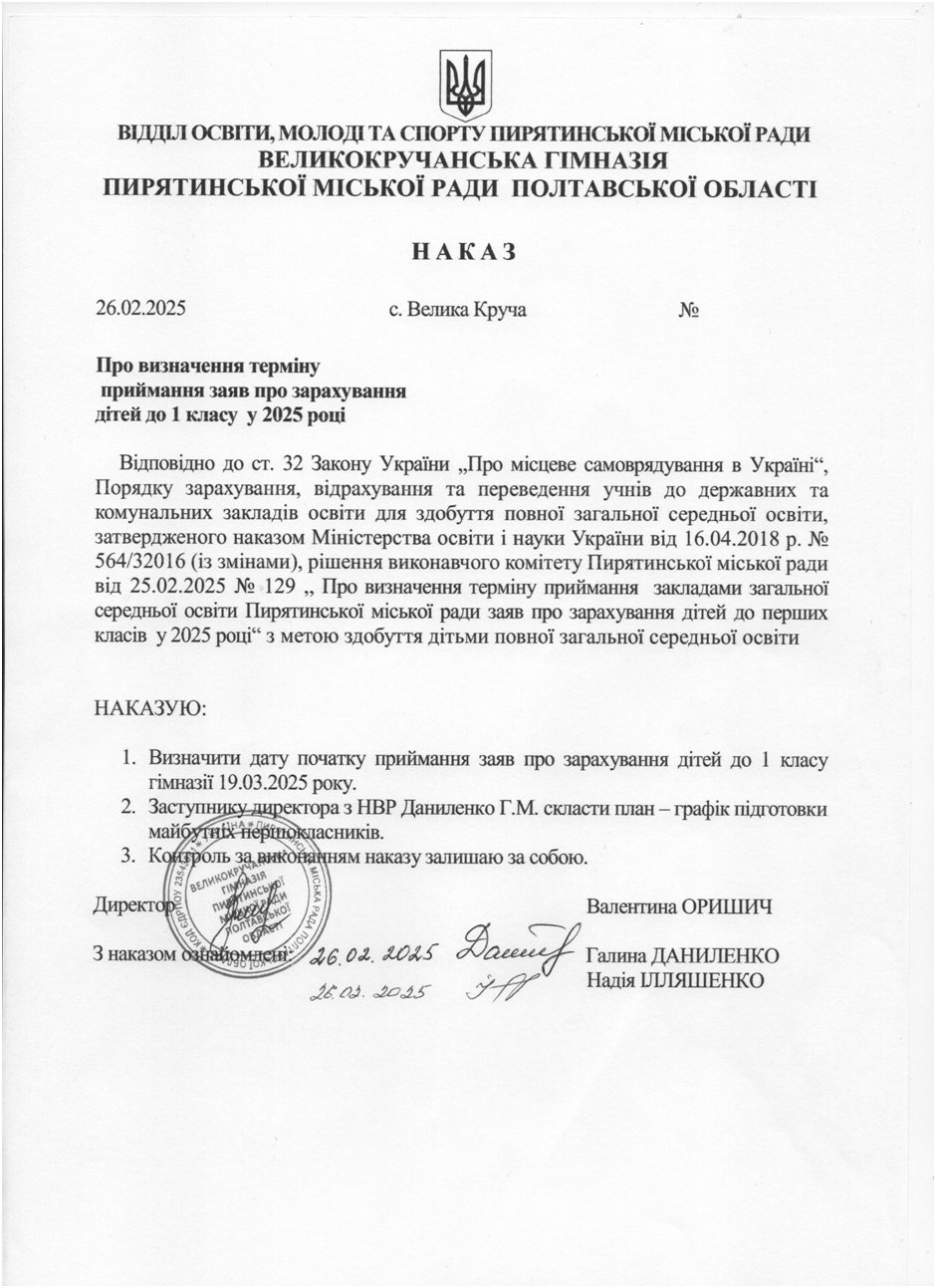 Про визначення терміну приймання заяв про зарахування дітей до 1 класу у 2025 році