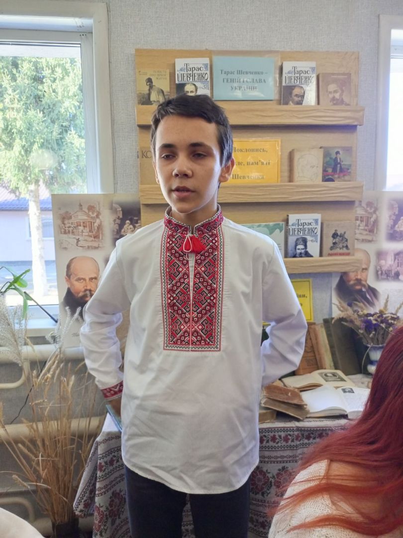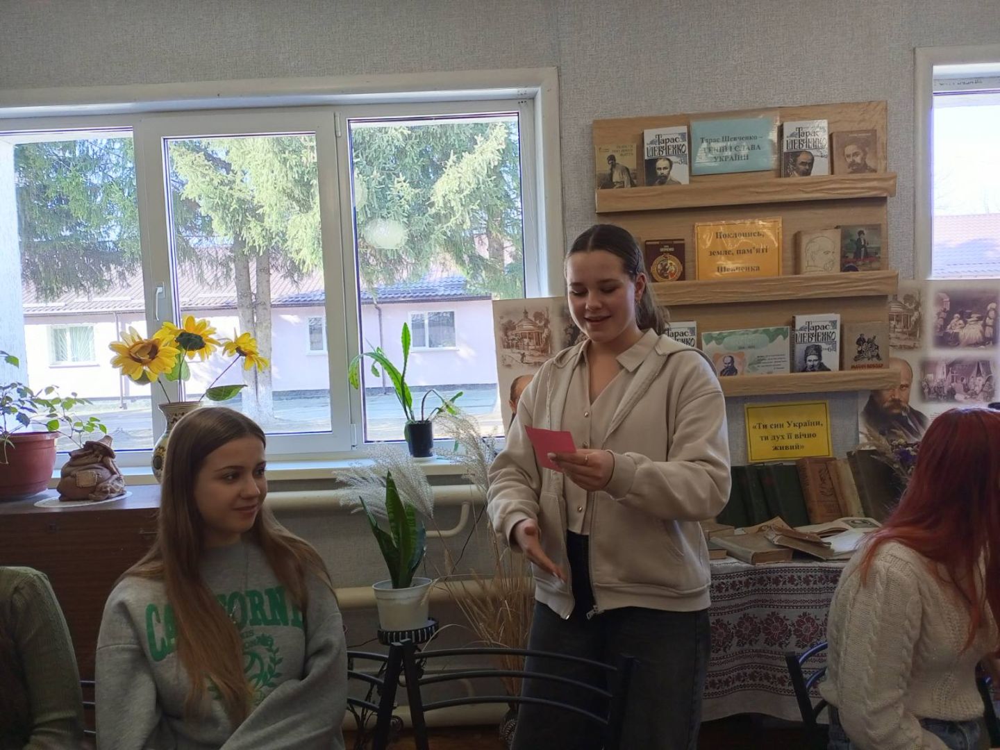 У Великокручанській гімназії був проведений виховний захід до дня народження Тараса Шевченка "Поклонись земле, пам'яті Шевченка" для учнів 8 - 9 класів.
