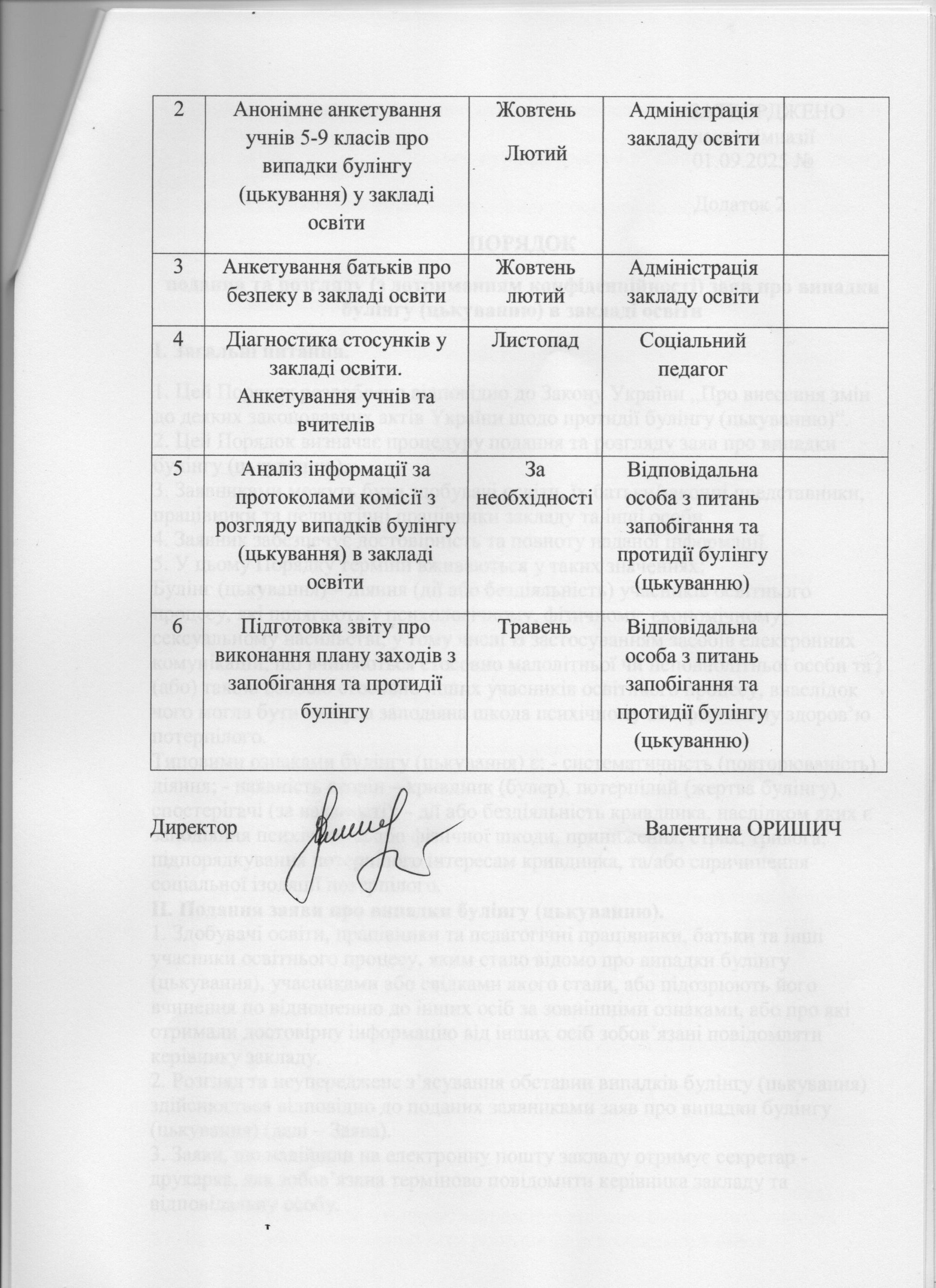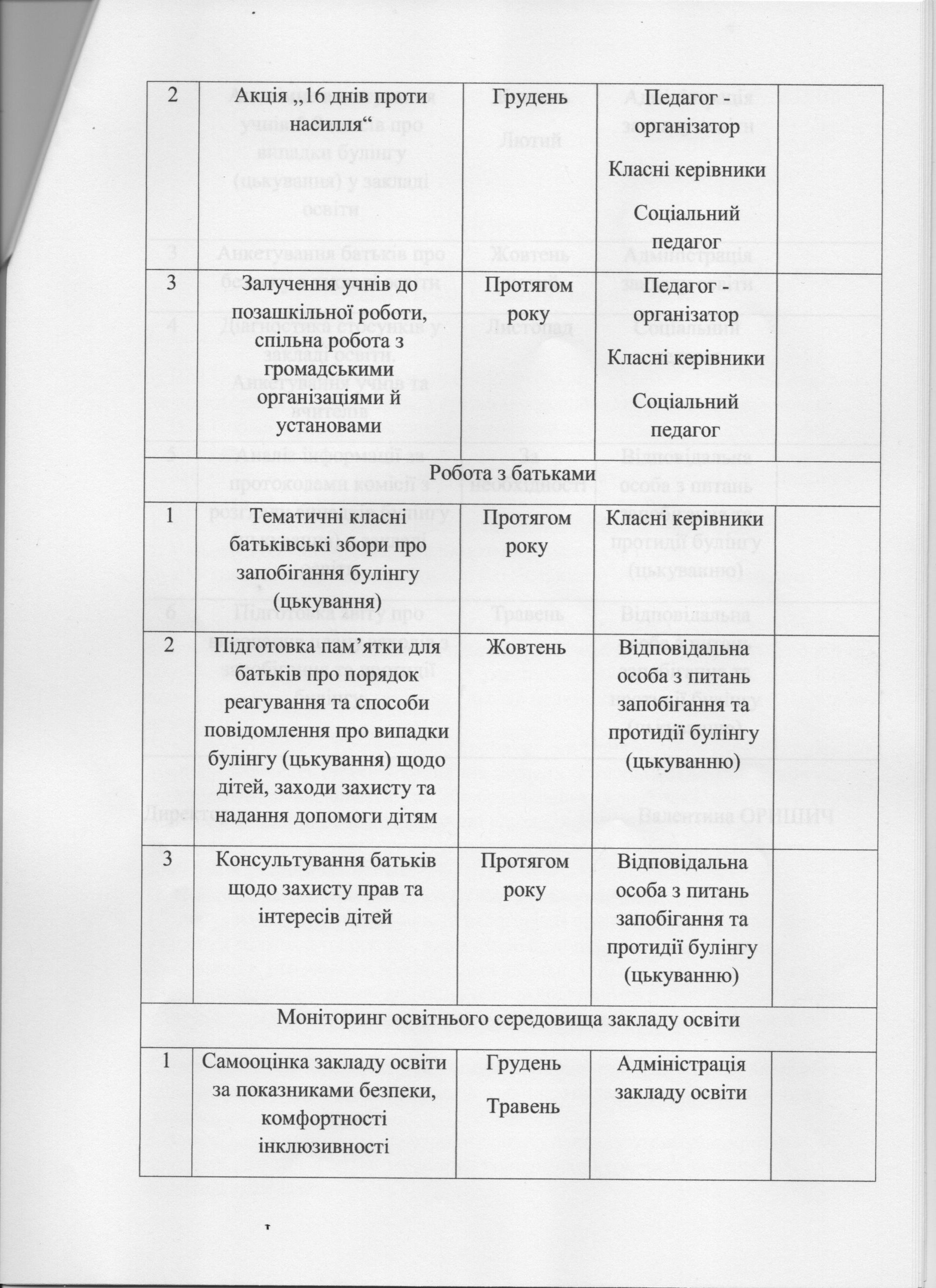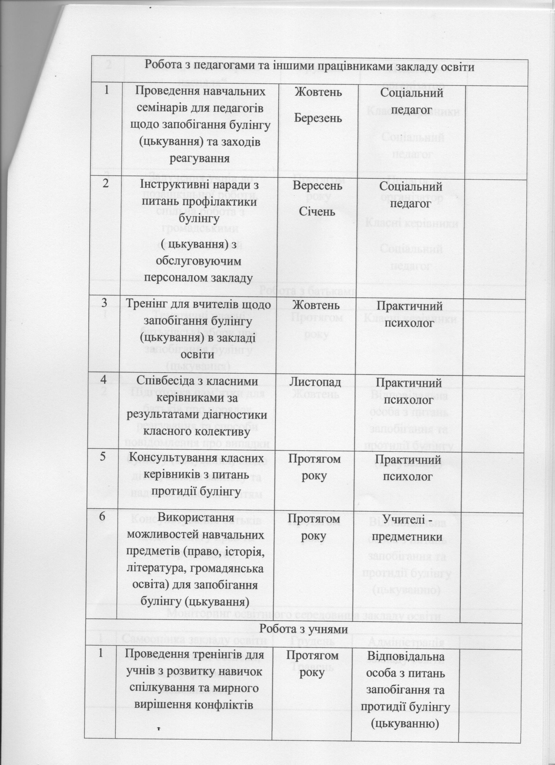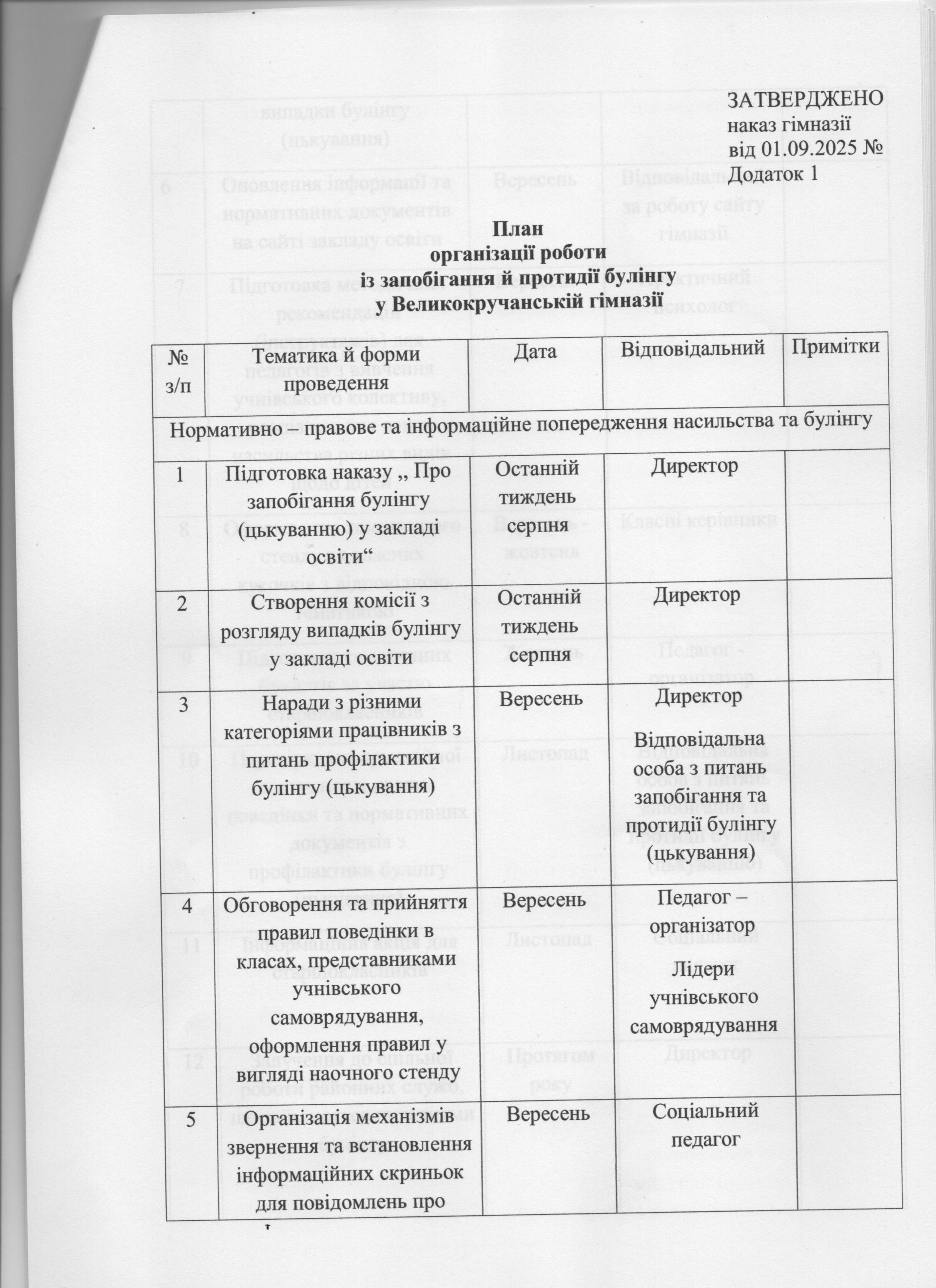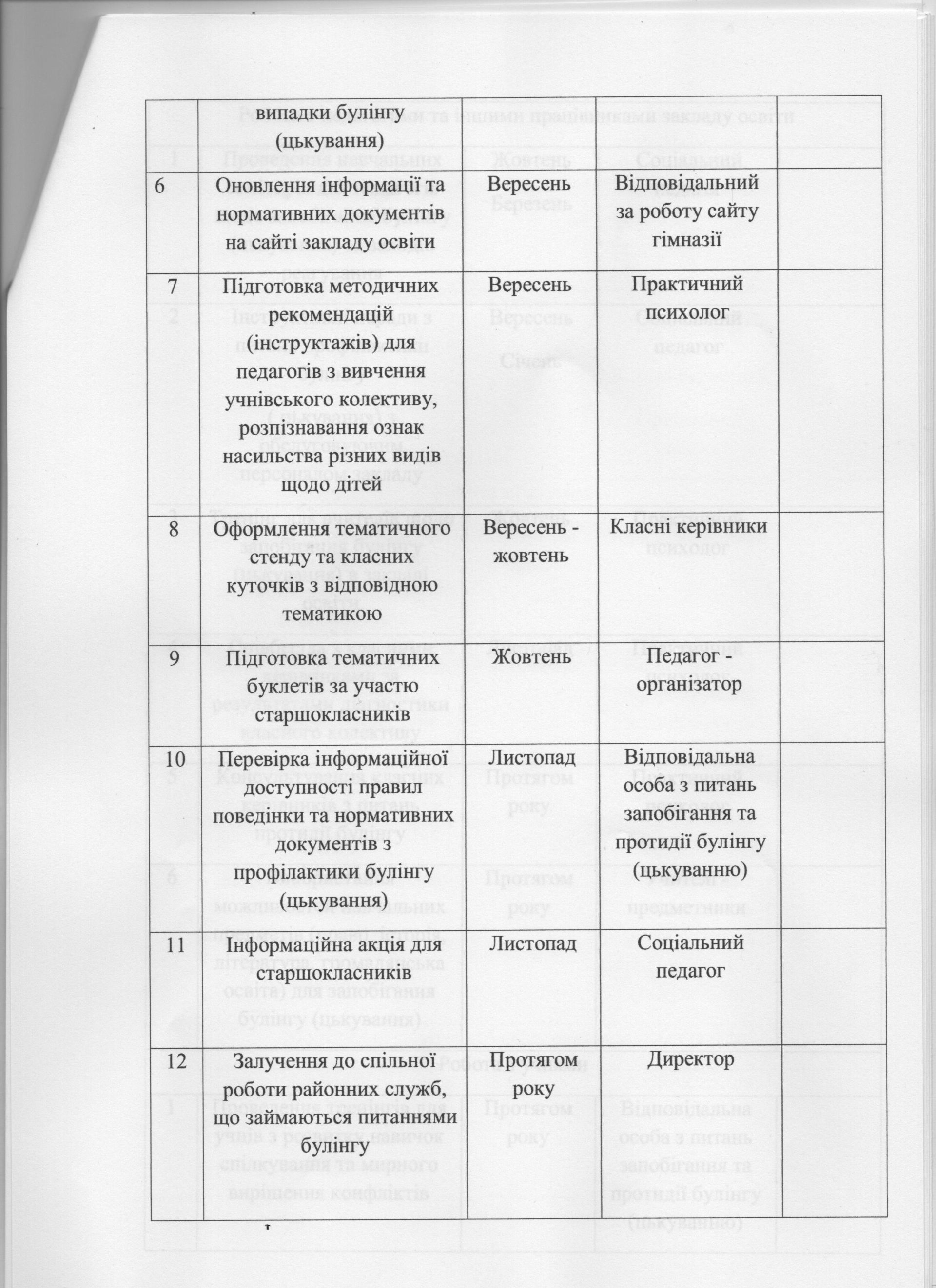 План організації роботи із запобігання й протидії булінгу у Великокручанській гімназії